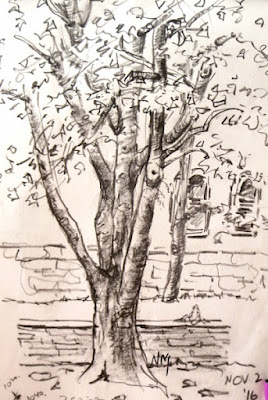 Another walking and drawing sketch with my Micron purple Brush Pen. I really had to keep the wash of watercolour loose to match the line. I love the originality of this kind of drawing.Wednesday, November 30, 2016